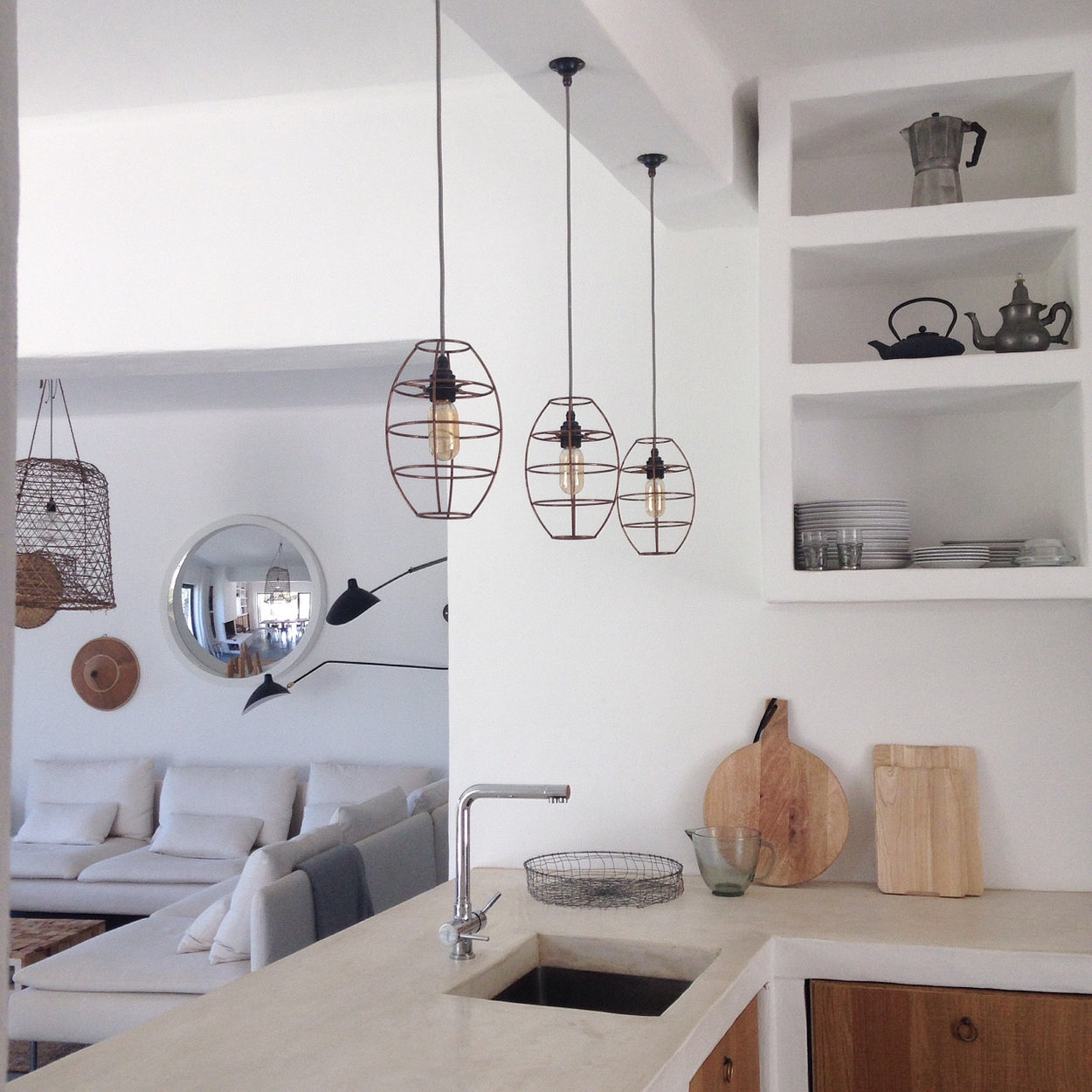 The alp light 305 in copper wire is very versatile. It can be used as it is to give your interior an industrial look or with a weave in white or tan leather or with jute crochet for a natural look.