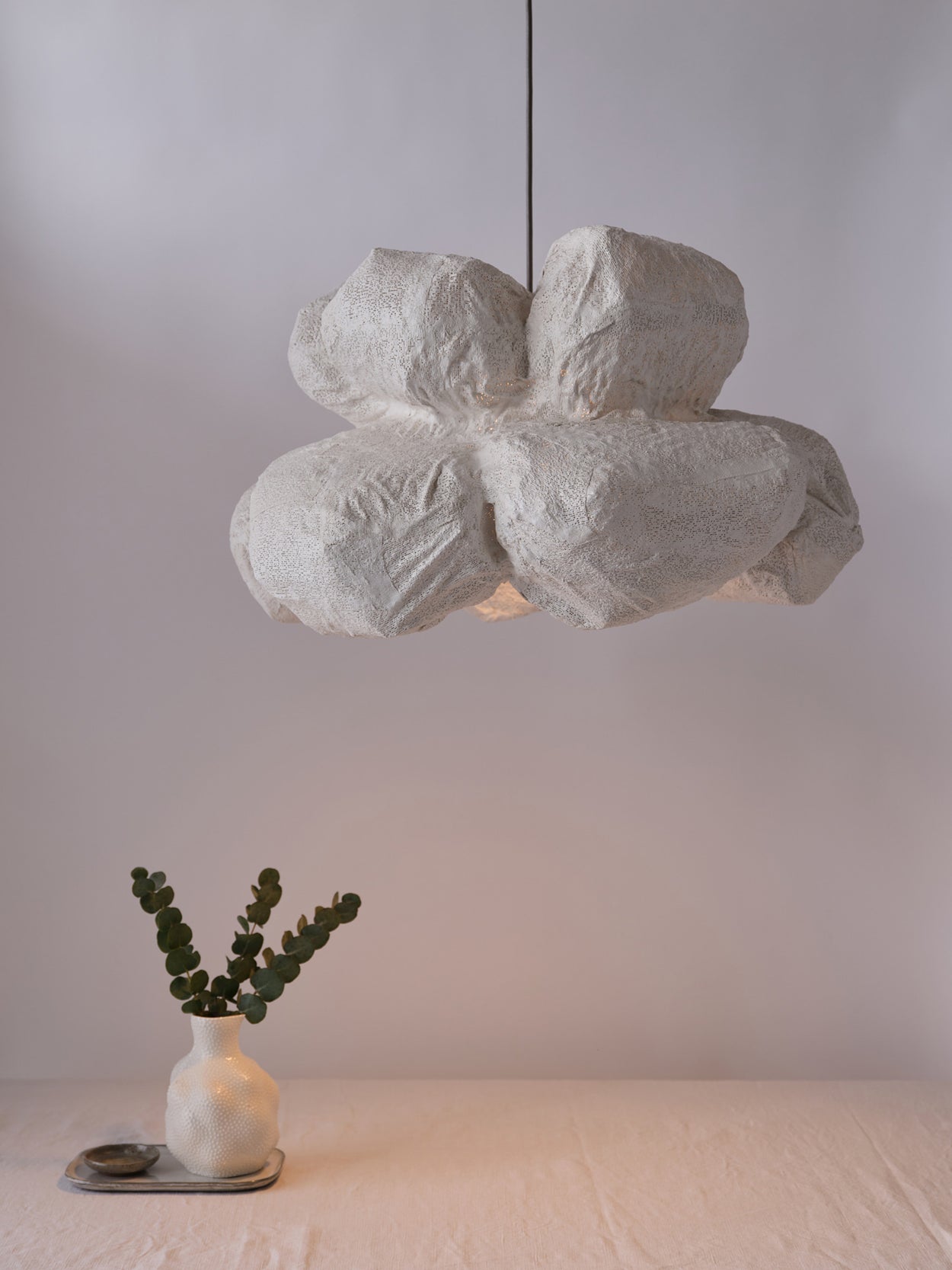 Inspired by nature, by seeds in particular, the sculptural light takes on organic shapes, reflecting the forms of the natural world and bringing them to your surroundings. Made by hand, these objects can evoke a sense of tranquility and bring the beauty of nature indoors. By creating organic shapes Annick is exploring the relation between the natural world and the comfort it brings to human life. She is always aiming to blend aesthetics with functionality, provoke an emotion, enhancing both the visual appeal and the practical use of lighting a living space.