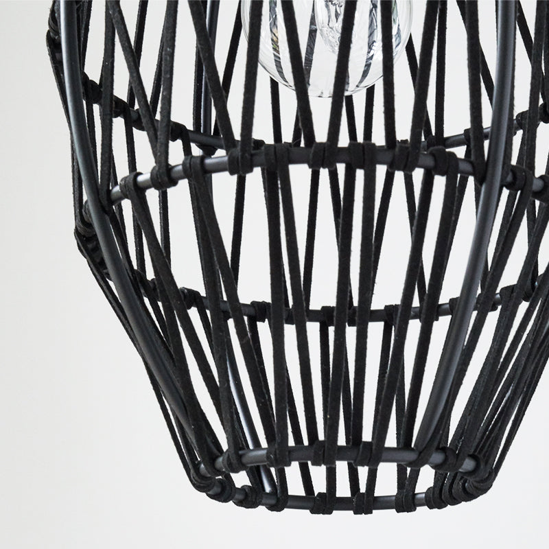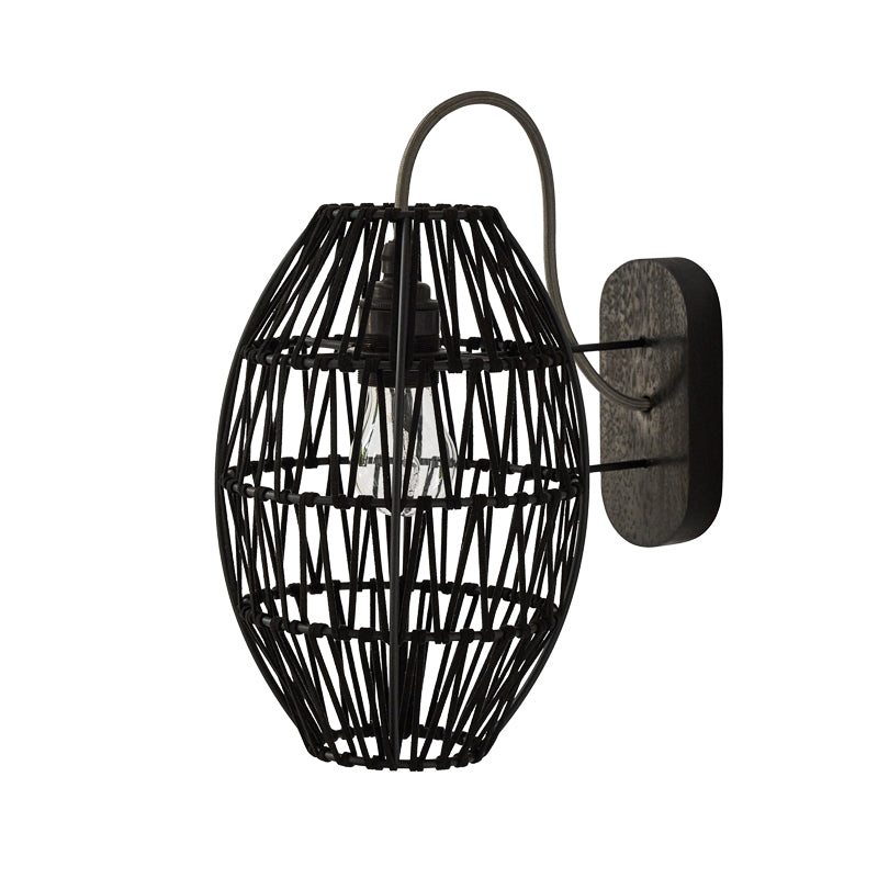 The alp wall light 310 has a black powder coated frame with suede-like cord weave creating great patterns that will reflect on its surroundings.