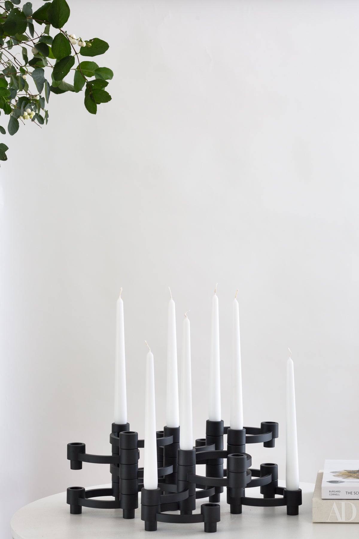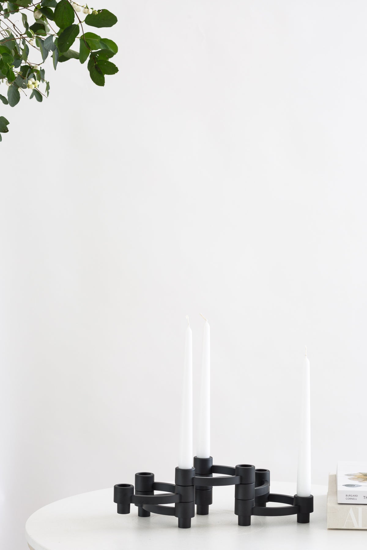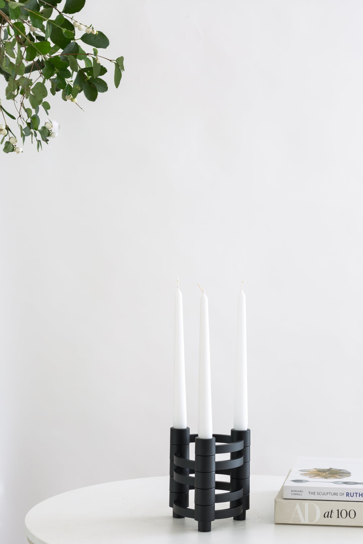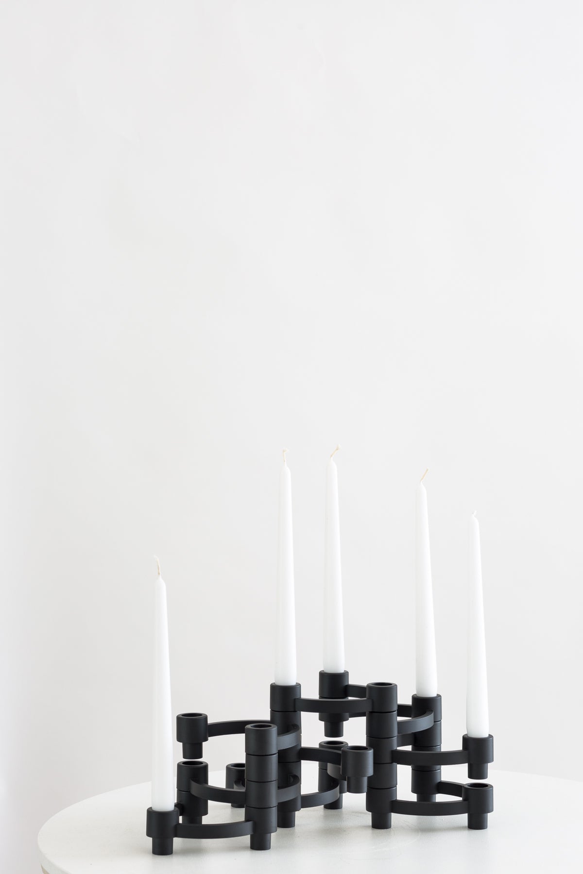 The alp metal candleholder 306 is sold in a pack of 5 units. With its contemporary design, it can be used as a single unit or several units can be connected to create your own unique sculpture