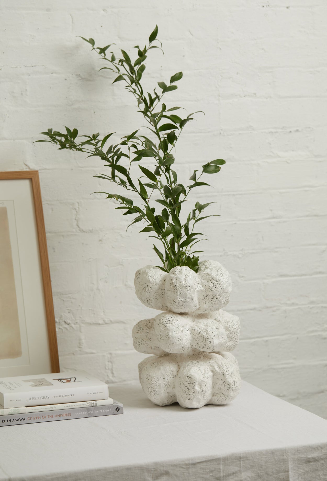 Inspired by nature, by seeds in particular, the sculptural alp vessel takes on organic shapes, reflecting the forms of the natural world and bringing them to your surroundings. Made by hand by Annick, these objects can evoke a sense of tranquility and bring the beauty of nature indoors. By creating organic shapes Annick is exploring the relation between the natural world and the comfort it brings to human life.